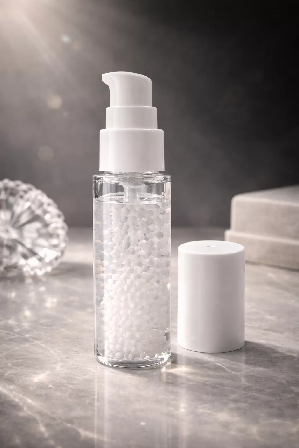 晶球凝露(Gel Beads / Capsule Gel Essence)是一種將活性成分包覆於透明或半透明凝膠球體中的創新保養劑型,